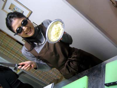 玉ねぎ対策はこれで!!バッチリ (ゴーグル持参?!) ちなみに、クリームコロッケ、作ってます~。
