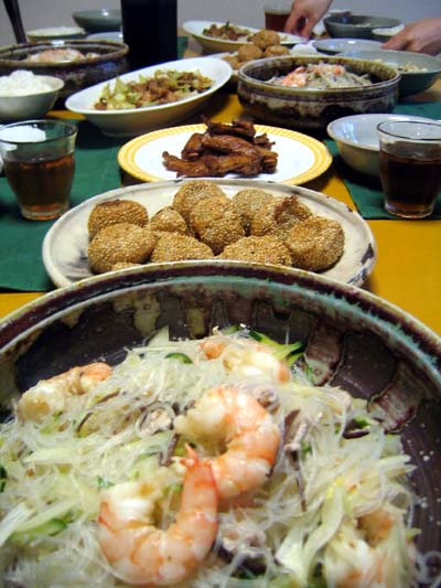 おはようございます。 今週の料理は中華のメニューです。 ・サンラータン(酢のきいた中華スープです) ・春雨サラダ ・回鍋肉 ・ごまだんご