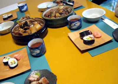 こんばんは。 今週は和食です。 ・太巻き寿司 ・れんこんのはさみ揚げ ・ぶり大根